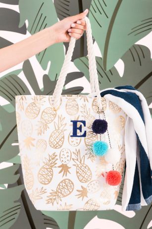 A playful pineapple print in glimmering gold makes this canvas tote bag a fun gift for a bride-to-be or bridal party. This lightweight carry-all is fully lined and the soft cotton rope handles provide comfort for your shoulders and your hands. Add personalized embroidery and this handy tote is a practical and chic gift for your beach-themed bachelorette party, wedding, or even honeymoon!