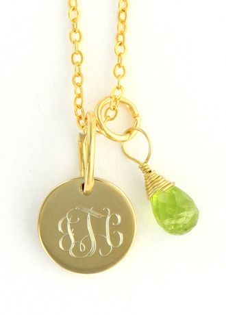 Two delicate details come together to create a gift to remember! This classic gold plated monogrammed pendant is enhanced with a gemstone accent, representing the month she was born, or chosen to coordinate with the colors of your wedding. Either way, this is a very special, highly personal gift that everyone in your bridal party will love!