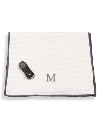 Ideal for every golf lover, this Personalized Golf Towel & Pitchfix Divot Tool Set features a design that is both smart and sharp. Non-abrasive, lightweight and super absorbent fiber knit towel features a waffle weave and grey trimmed design. Divot tool features an ABS rubberized coating, magnetized ball marker and durable spring action closure for compact and safe storage.