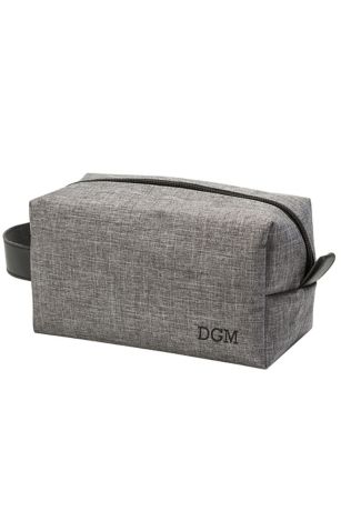 An ideal travel companion for the man on the go, the Personalized Grey Dopp Kit features a comfortable leather strap handle, a wide zipper opening, and is perfect for carrying all of your necessities. Great for grooming kits or toiletries this handsome dopp kit will endure travel vacations and business trips!