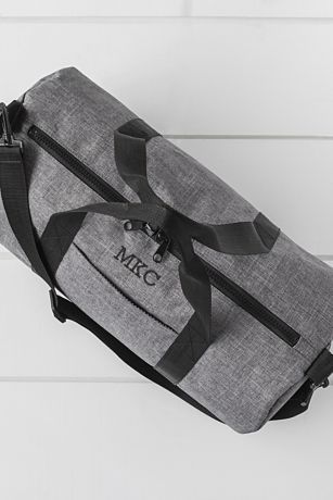 Great for trips to the gym or weekend getaways alike, the Personalized Grey Duffle Bag has room for all of your essentials. The sleek one compartment design is accented by two black handles and a black adjustable and removable shoulder strap. The striped interior, along with the outside pocket rounds out the simple design.