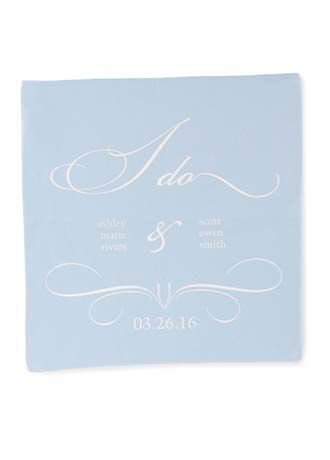 This hanky is the perfect "Something blue" and "something new" for the bride to carry on her wedding day! This I Do Hanky will make a lovely keepsake of the wedding day and become an heirloom for years to come. The light blue hanky is printed with I do design, flourishes, and can be personalized!