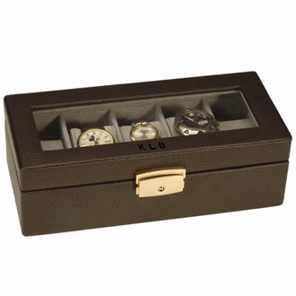 Genuine Leather exterior with a view through top, soft velvet interior with 5 slots and cushions for your fine watch collection.