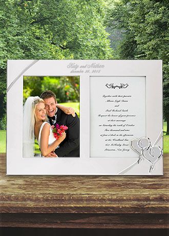 Display a wedding photo and one of your wedding invitations - or just 2 of your favorite photos - from the special day in this double frame. Each frame has two 5x7 openings and is adorned with a raised design of intertwined hearts. Personalize this keepsake frame to inspire memories of your special day for years to come.