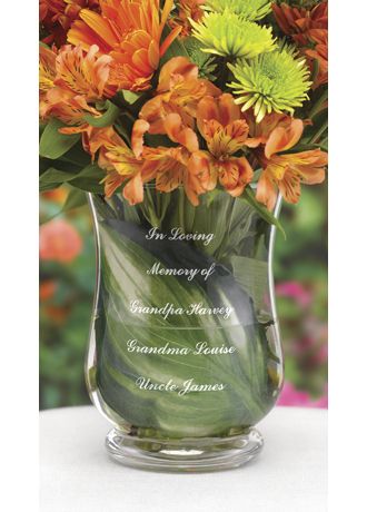 Personalize this vase with three names of loved ones and fill the vase with flowers or a candle for a beautiful display of love and remembrance. The vase has three lines for personalization following "In Loving Memory of".