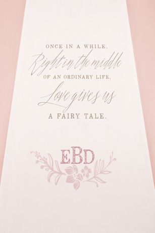 The Personalized Modern Fairy Tale Aisle Runner includes gorgeous font designs with an old world elegance. Romantic, yet modern, this aisle runner will add a touch of whimsy to your ceremony! Includes an attached cord and double-sided tape.