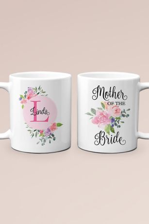 A mother of the bride gift she'll absolutely adore, featuring her initial and name on a pretty floral mug.