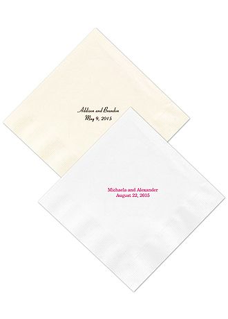 Add a personal touch to your event with personalized beverage napkins. Personalize your napkins with two lines of text (up to 18 characters including spaces per line). Select an imprint color from one of David's Bridal exclusive ink colors or one of the standard foil colors. Complete the look by selecting a font that matches your style.
