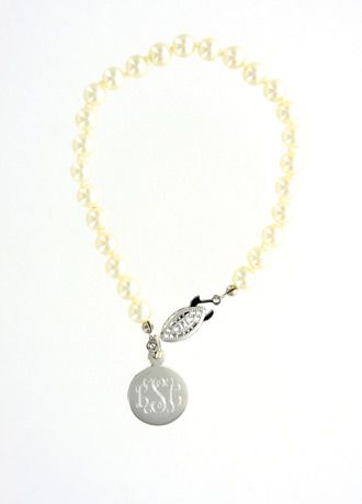 Something about pearls just makes you feel dressed up and beautiful! Add a monogrammed piece of sterling silver, and you have the perfect piece of jewelry. That's probably why this classic, hand-knotted pearl charm bracelet is a favorite!