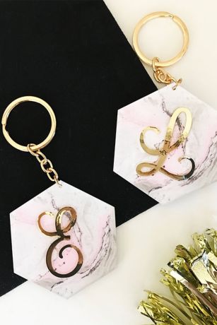Your bridal party and friends will remember and cherish your special day with the gift of these unique and practical Personalized Pink Marble Monogram Keychains.