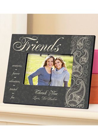 Classic with a touch of contemporary, this grey-toned picture frame with white paisley accents looks great even in the most formal location. Lovingly adorned with appropriate words of friendship written in attractive script, this personalized Pretty Paisley frame is the perfect way to honor a trusted pal or much-loved family member. Frame measures 8" x 10" and holds a 4" x 6" picture. Select appropriate header and personalize with two lines of up to 25 characters per line.
