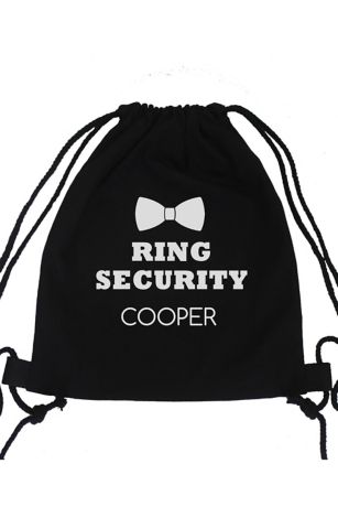 This cotton drawstring "ring security" bag makes the perfect gift for your ring bearer. Personalize it with his name for an added special touch.
