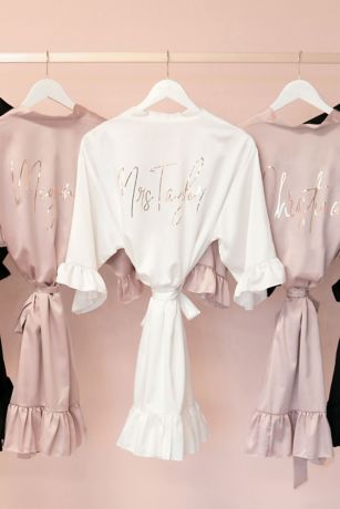 Get ready in style wearing this super-soft satin robe with ruffles at the cuffs and hem. Personalized across the back with the name of your choice.