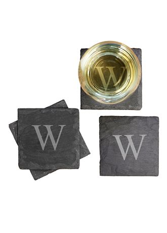 Naturally edged, these Slate Coasters are mounted on velvet to protect counter and table tops. Perfect for any occasion, the granite-colored coasters come in a custom engraved set of four.