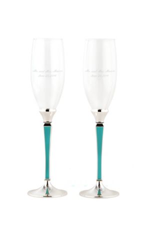 Toast to being newly married and pay homage to the classic wedding rhyme with these beautiful blue toasting flutes. The pretty blue lacquer will add the perfect splash of "something blue" to your wedding decor!