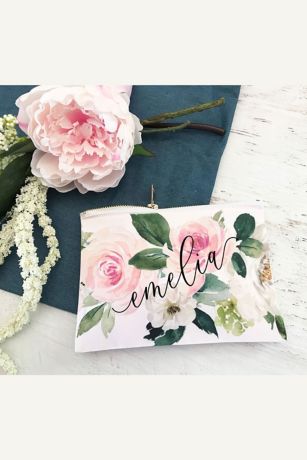 Thank your maids with personalized makeup bags with a lush floral design and their names in pretty script. Fill it up with all the necessities they'll need for the big day.