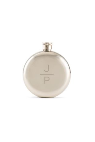 Stacked monogram initials and a polished finish make this cute hip flask a nice gift for both bridesmaids and groomsmen!