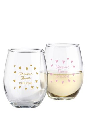 Perfect for bridal showers, the Sweet Heart Personalized 9 oz. Stemless Wine Glass makes an adorable favor! Available in gold or pink ink, these glasses can be personalized with the details of your event for a truly unique favor!