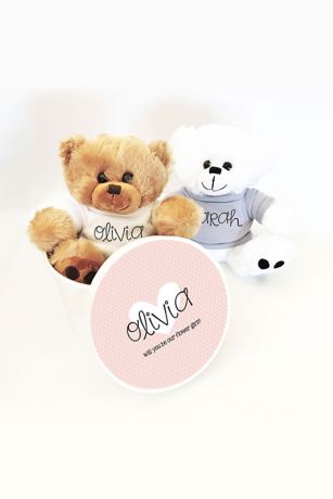 Custom teddy bears make a great gift for the flower girls and ring bearers in your bridal party or just because! Each adorable teddy bear comes in a personalized shirt with the name and short text of your choice. Complete the gift with our white personalized gift box.