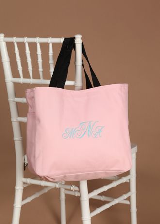 Toting all your wedding-day gear is fashionable and easy with these roomy totes. These bags have sturdy black handles, and feature inner and outer pockets for stowing small items.