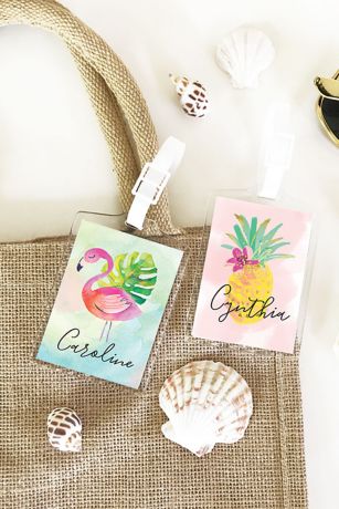 Tropical beach luggage tags make a great gift for bridal parties, bachelorette parties, getaway trips and more! Each tag comes personalized with your name of choice on one of our fun tropical theme designs.