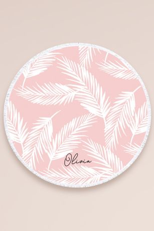 Turn pool hangs into a photo-worthy moment with this palm-print round towel, trimmed with white fringe and personalized with the name of your choice in black script.