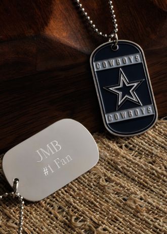 Show your loyalty to the boys on the gridiron with these custom personalized NFL Dog Tags! Each includes team name and logo as well as a long, easy-on-and-off chain and plenty of room for personalization. Choose your favorite team and wear it during football season and all year round!