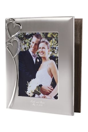 Carry the romantic twin hearts theme with this Swarovski crystal-studded photo album. The brushed silver-plated finish has a non-tarnish lacquer coating, accented by a soft tan ultra suede lining and back cover.
