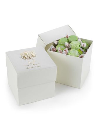 - It is recommended to use wrapped candies or liners when placing food into any type of favor box or container.