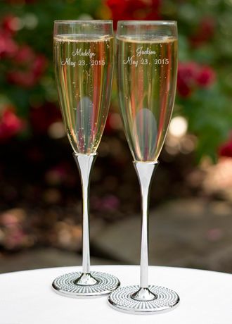 - Personalization: Enter two lines of personalization such as bride's name and wedding date on one flute and groom's name and wedding date on the other flute. 12 characters per line including spaces.