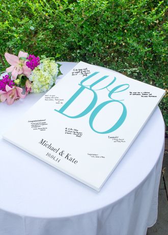Perfect for a modern bride looking for a traditional alternative, this Vows Gallery Wrapped Canvas Guest Book allows guests to sign their well wishes for the bride and groom creating a one of a kind keepsake. Custom wrapped art comes complete with personalized canvas professionally stretched around wooden frame for easy display and storage options.