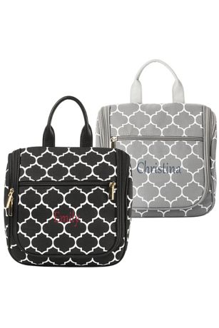 This gorgeous and practical Personalized Women's Cosmetic Bag features ample space for your traveling must-haves and a fun pattern. A great gift for your bridemaids or for yourself to use on the honeymoon!