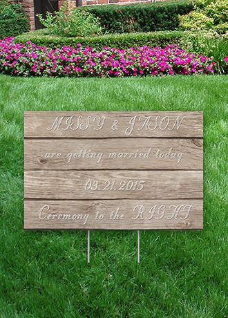 This two-sided, rustic and natural personalized wood grain yard sign will help direct your guests with style and ease at your wedding or reception location. Personalize with text of your choice to help your guests find their way to your event or simply add a decorative element to your party.