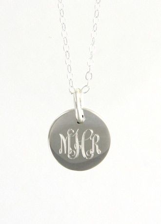 Sweet simplicity! This monogrammed sterling silver pendant on a 16-18" chain is the perfect gift for your entire bridal party, from flower girls to Mother-of-the Groom. Worn alone or with a beaded necklace, she will have this keepsake gift for decades to come.