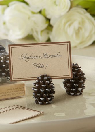 Sometimes the simplest things make a profound statement about who we are and what we love. When Mother Nature plays a starring role in your wedding design this graceful miniature pinecone place card/photo holder speaks volumes about your loving connection to the world around you.