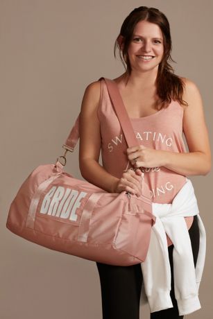 Perfect for dashing to the gym, packing as a carry-on, or simply for corralling all of your wedding planning materials, this pink bride duffle bag has tons of room and even features a special compartment for your shoes.