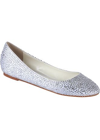 Crystal encrusted ballet pump with small concealed wedge for comfort.