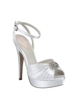 - Mimosa platform sandal comes with a lovely cross over ankle strap and pleated vamp with vintage crystal trim.