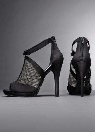 - Platform peep toe bootie features fishnet overlay detail and delicate bow embellished ankle strap.
