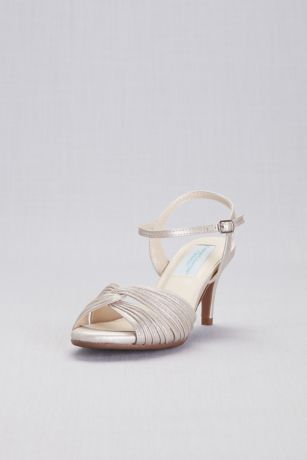 - Satin or synthetic upper, synthetic sole