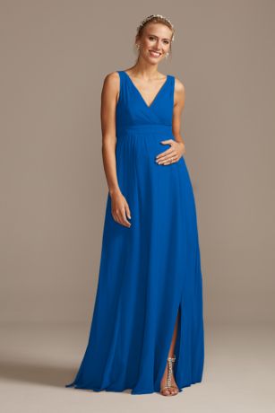 This luxurious soie chiffon bridesmaid dress features a flattering surplice bodice and cummerbund-style waistband. Its flowy side-slit skirt is ideal for showing off strappy heels or sashaying across the dance floor.