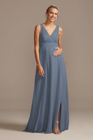 This luxurious soie chiffon bridesmaid dress features a flattering surplice bodice and cummerbund-style waistband. Its flowy side-slit skirt is ideal for showing off strappy heels or sashaying across the dance floor.
