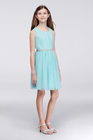 Pleated Tulle Party Dress with Jeweled Sash