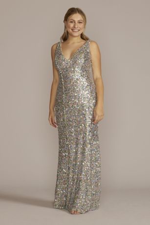 Plunging Sequin Tank Sheath Dress