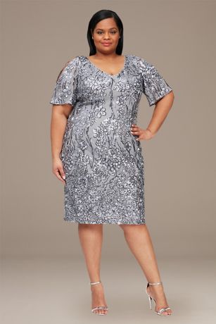 Plus Floral Sequin Sheath with Flutter Sleeves