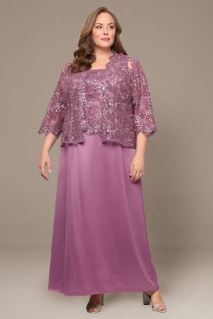 Plus Satin and Chiffon Embroidered Jacket Dress