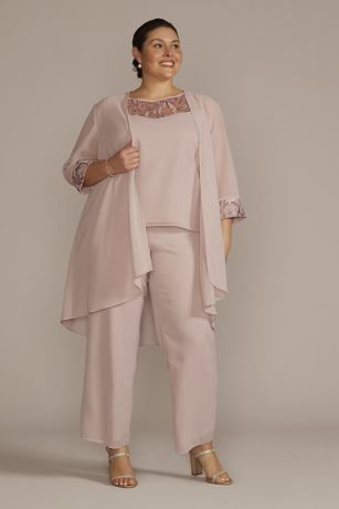 Plus Size Embroidered Chiffon Three-Piece Pantsuit