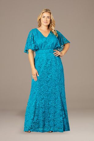 At your next event, you'll feel like royalty in this classic lace dress designed with a dramatic trumpet skirt, whimsical illusion sleeves, and a figure-defining waist detail.