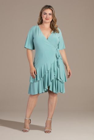 A double flounce hem adds flirty movement to this plus size jersey wrap dress equally perfect for your next daytime event or night out.