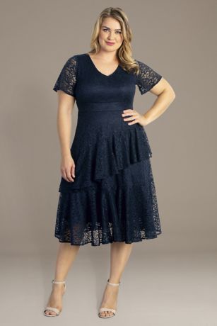 Layers of lace fabric flounce with your every step on this plus size midi dress. Short illusion sleeves make a subtle statement, creating a look that's both classic and modern.